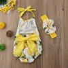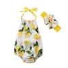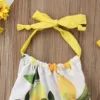 | Lovely Newborn Kids Baby Girls Clothes Lemon Print Romper Sleeveless Backless Jumpsuit 2PCS Outfit Bow Tie Sunsuit Set |