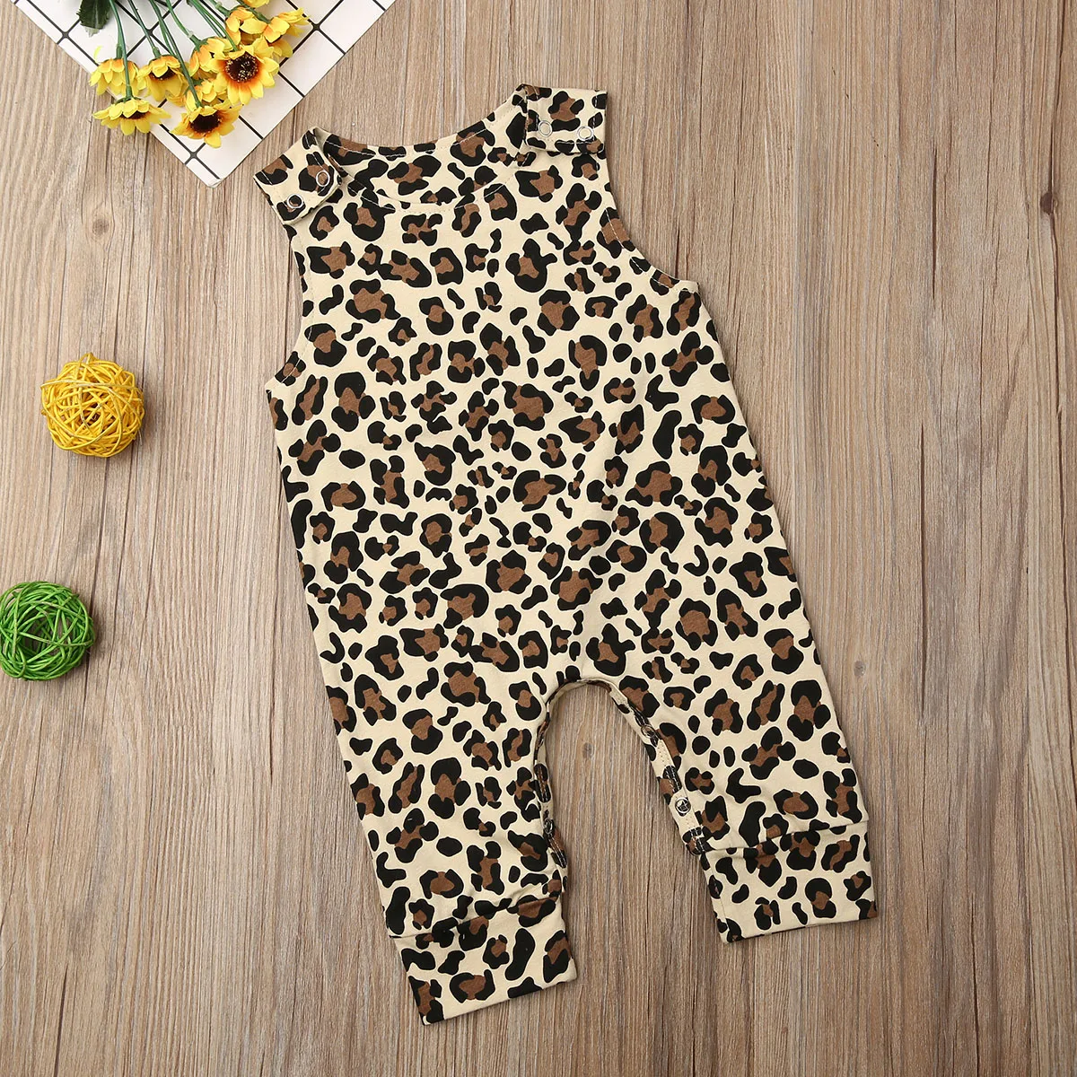 Summer Newborn Baby Girl Boy Clothes Leopard Romper Sleeveless Jumpsuit Outfits Sunsuit